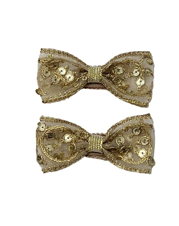 These handmade golden snap clips for girls are crafted using premium golden embroidery lace for a refined and elegant look. The non-slip design ensures a secure and comfortable hold, making them perfect for kids. Ideal for Eid celebrations, birthday parties, festive events, and everyday wear.